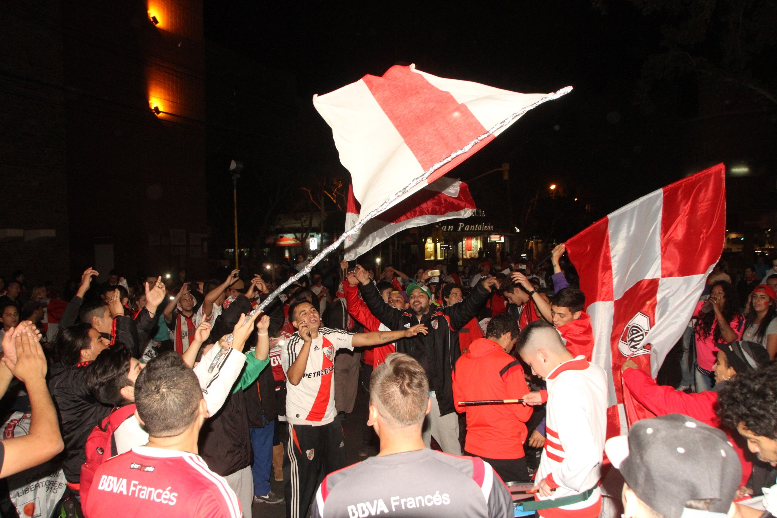 Cientos de hinchas de River se concentraron después de las 19 en la Plaza 25 de Mayo y festejaron el triunfo del club de sus amores por 3-1 sobre River.