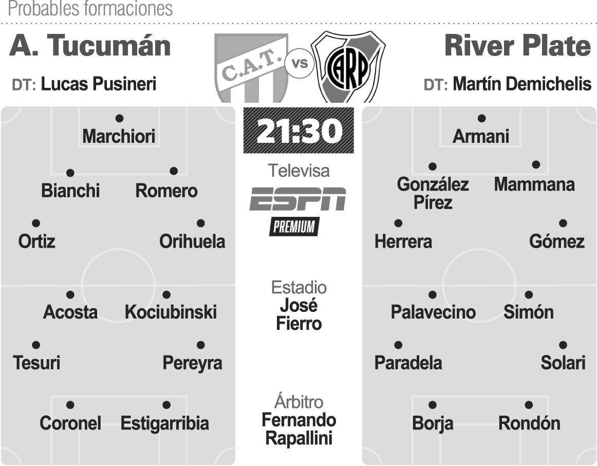El "Millonario", con un equipo distinto al habitual, intentará estirar su racha positiva en Tucumán antes de una semana importante que implicará el viaje a Río de Janeiro para medirse con Fluminense, puntero del grupo D de la Libertadores, y después el primer Superclásico contra Boca con Martín Demichelis como entrenador.