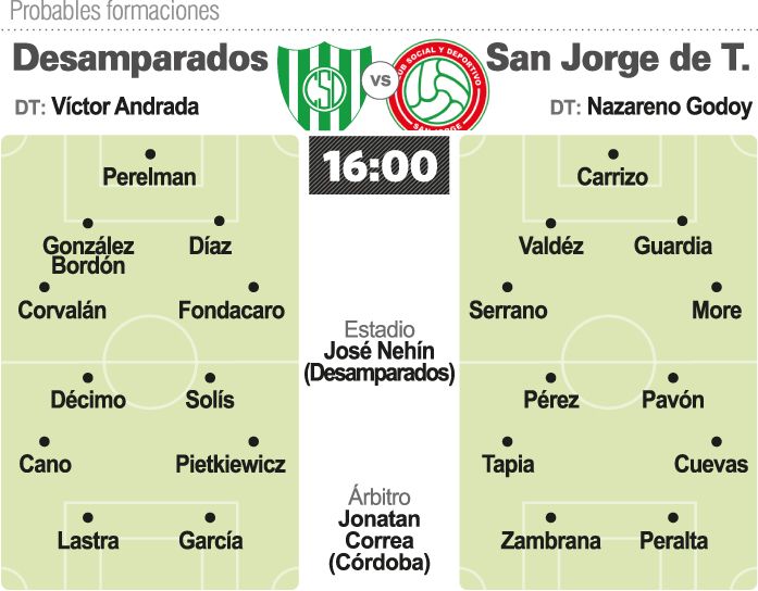 Enfrente tendrá al joven pero entusiasta San Jorge, quien en sus diez años de existencia ya demostró que le gusta pelear a lo grande. Viene de quedar eliminado en la fase que determinó el primer ascenso y que fue para Estudiantes de Río Cuarto y buscará comenzar este nuevo camino sumando en San Juan. Con respecto a la formación que goleó al Víbora lo único que cambiará hoy serán los delanteros.