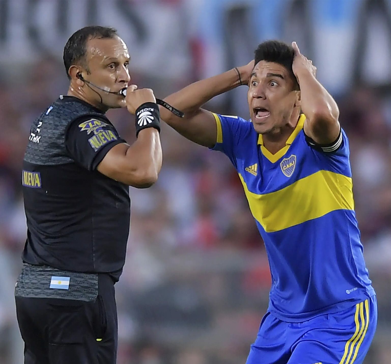 Luego del gol agónico de Miguel Borja de penal, el mediocampista del Millonario festejó efusivamente en la cara de Nicolás Figal (justo quien hace una semana había dicho que iban a buscar "hacer un buen partido en el gallinero", tras la victoria ante Racing). Esa reacción de Palavecino desató el caos: Romero fue directo a buscarlo y todo terminó en pelea entre los jugadores de ambos equipos. Incluso Marcos Rojo -quien está lesionado- ingresó al césped en medio de los empujones y golpes. Luego de que se calmó la situación en el campo de juego, el árbitro Herrera (foto) echó a Agustín Palavecino (señalado como el que incitó con una cargada que inició las peleas) y los suplentes Ezequiel Centurión y Elías Gómez por el lado del Millonario, mientras que a Nicolás Valentini, Ezequiel Fernández y Miguel Merentiel por el lado del Xeneize (además de Jorge Almirón, el DT).