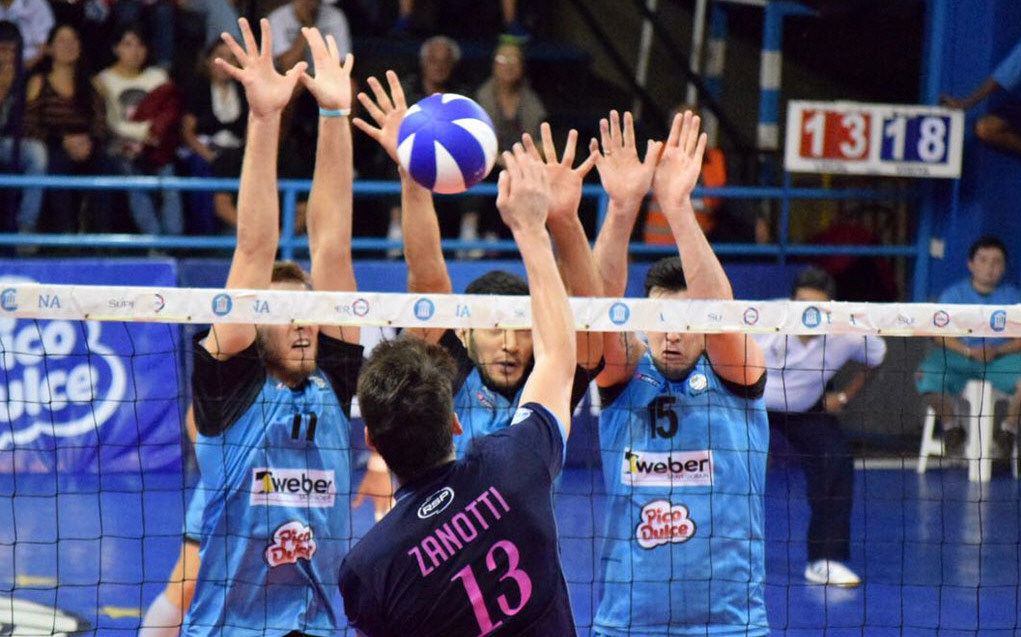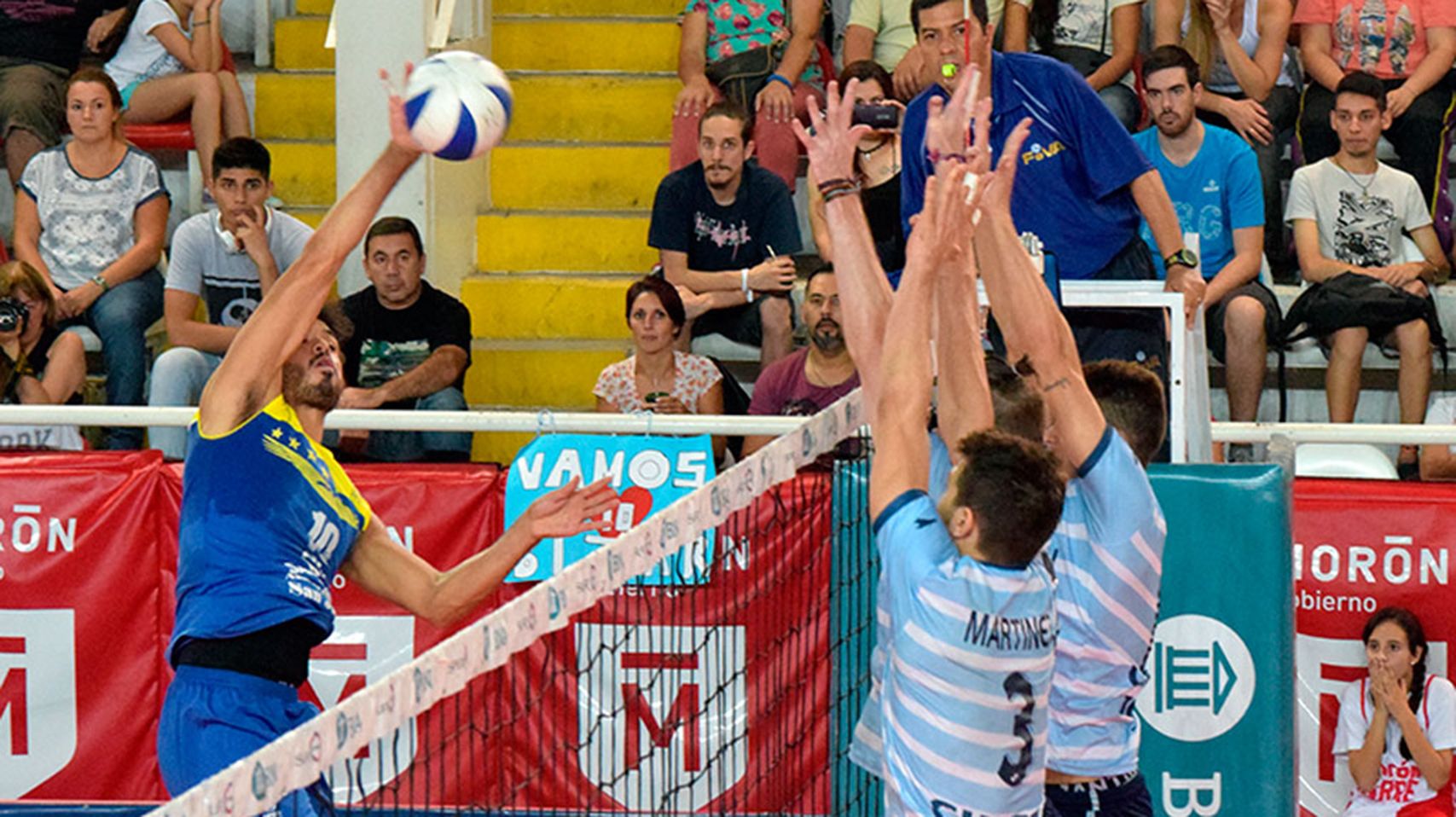 Otro golpe. Nicolás Lazo, segundo anotador de UPCN -con 15 puntos- detrás de Nikolay Uchikov (23), busca superar el triple bloqueo que le propone Ciudad. El equipo sanjuanino ganó los dos partidos en condición de visitante y necesita uno más para volver a estar en la final. La serie se traslada ahora a San Juan.