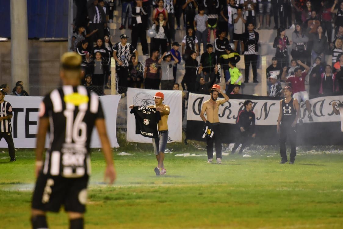 Cuando habían pasado 30 minutos del primer tiempo, el árbitro catamarqueño Héctor Lingua le sacó la roja a un jugador del local y la hinchada consideró que la media era exagerada. Por las agresiones y peleas, el encuentro estuvo detenido por 20 minutos y el primer tiempo se cortó a los 40 minutos.