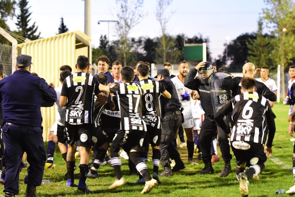 Tras llegar al estadio de la vecina provincia en remis, para evitar complicaciones, los jugadores entraron a la cancha y vivieron un partido caliente, que tuvo más de violencia de que de fútbol.
