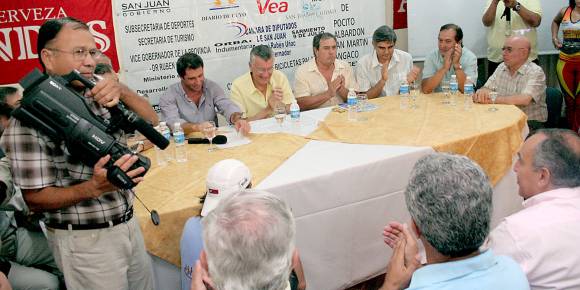 Ayer, en el sala de conferencias que posee la Municipalidad de Pocito, se llevó a cabo la presentación de la 28va. Vuelta Ciclista a San Juan. Con el gobernador José Luis Gioja junto al intendente, Sergio Uñac, como anfitrión, presidiendo la mesa de autoridades, en la que también estuvieron dirigentes y otros funcionarios, Juan Ernesto Pacheco, titular del Pedal Club Olimpia, brindó detalles de la carrera que paraliza a toda la provincia. La Vuelta, no hacen falta más palabras para referirse a ella, volverá al formato de nueve etapas y un prólogo. Pero además, retornará a tener su etapa final en la Avenida de Circunvalación.