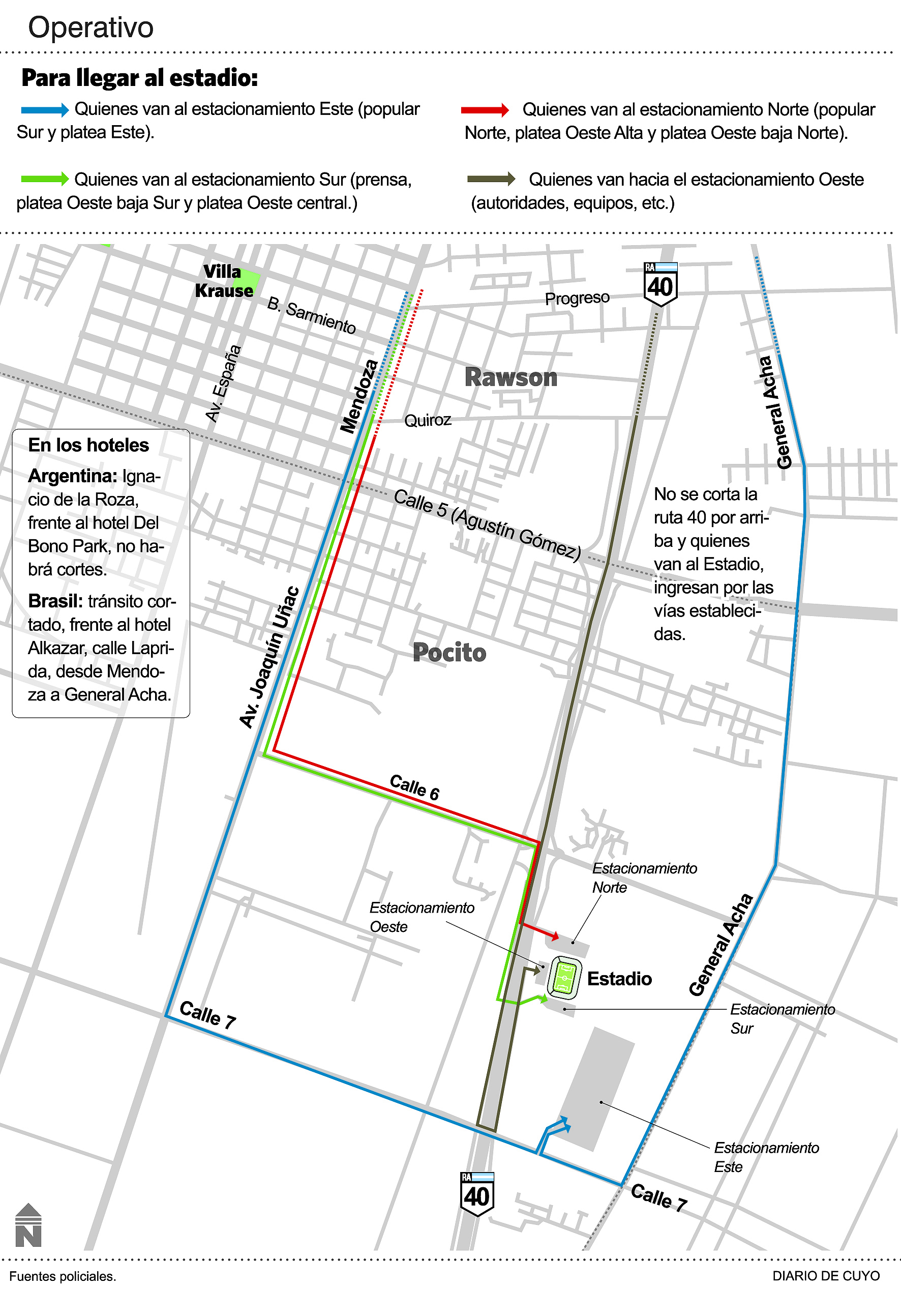 No será un partido más el de esta noche. Después de tantas jornadas repletas de gloria, el Estadio del Bicentenario se vestirá de gala una vez más para albergar el trascendental duelo que marcará un antes y un después en la historia del deporte local. Argentina y Brasil jugarán en el "Gigante" pocitano que se preparó para estar a la altura de la ocasión: estrenará tribunas pintadas y cuatro torres de iluminación, entre otras obras de revestimiento y mejoras en campo de juego.