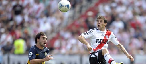 River: Marcelo Barovero; Gabriel Mercado, Germán Pezzella, Jonathan Bottinelli, Ramiro Funes Mori; Carlos Sánchez, Leonardo Ponzio, Ezequiel Cirigliano, Martín Aguirre; Rodrigo Mora y David Trezeguet. Director técnico: Matías Almeyda.
