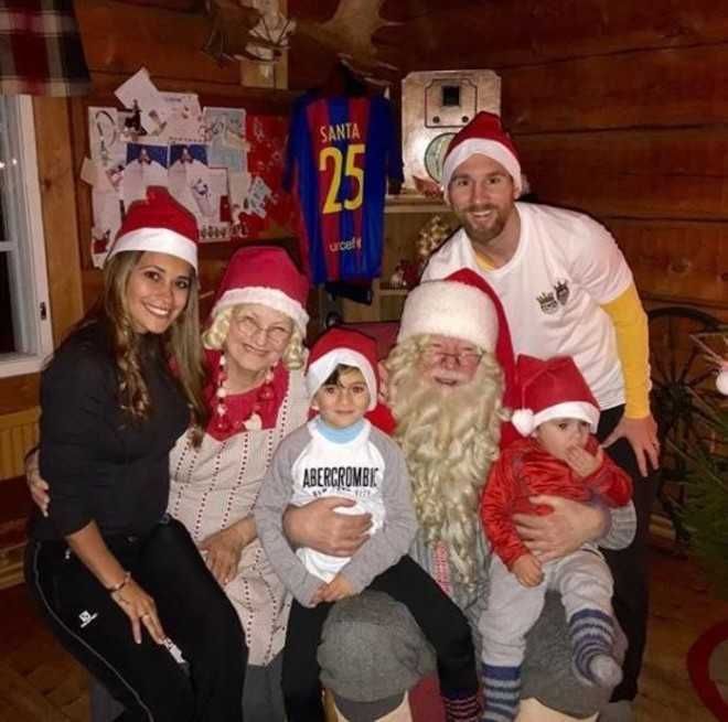 Lionel Messi utilizó su cuenta en Instagram para mostrarse junto a su esposa, Antonela, y sus dos herederos hasta ahora (espera otro varón): Thiago y Mateo. Aunque el hijo menor de la estrella del Barcelona y la selección argentina no pareció muy a gusto con la postal familiar junto a Papá Noel.