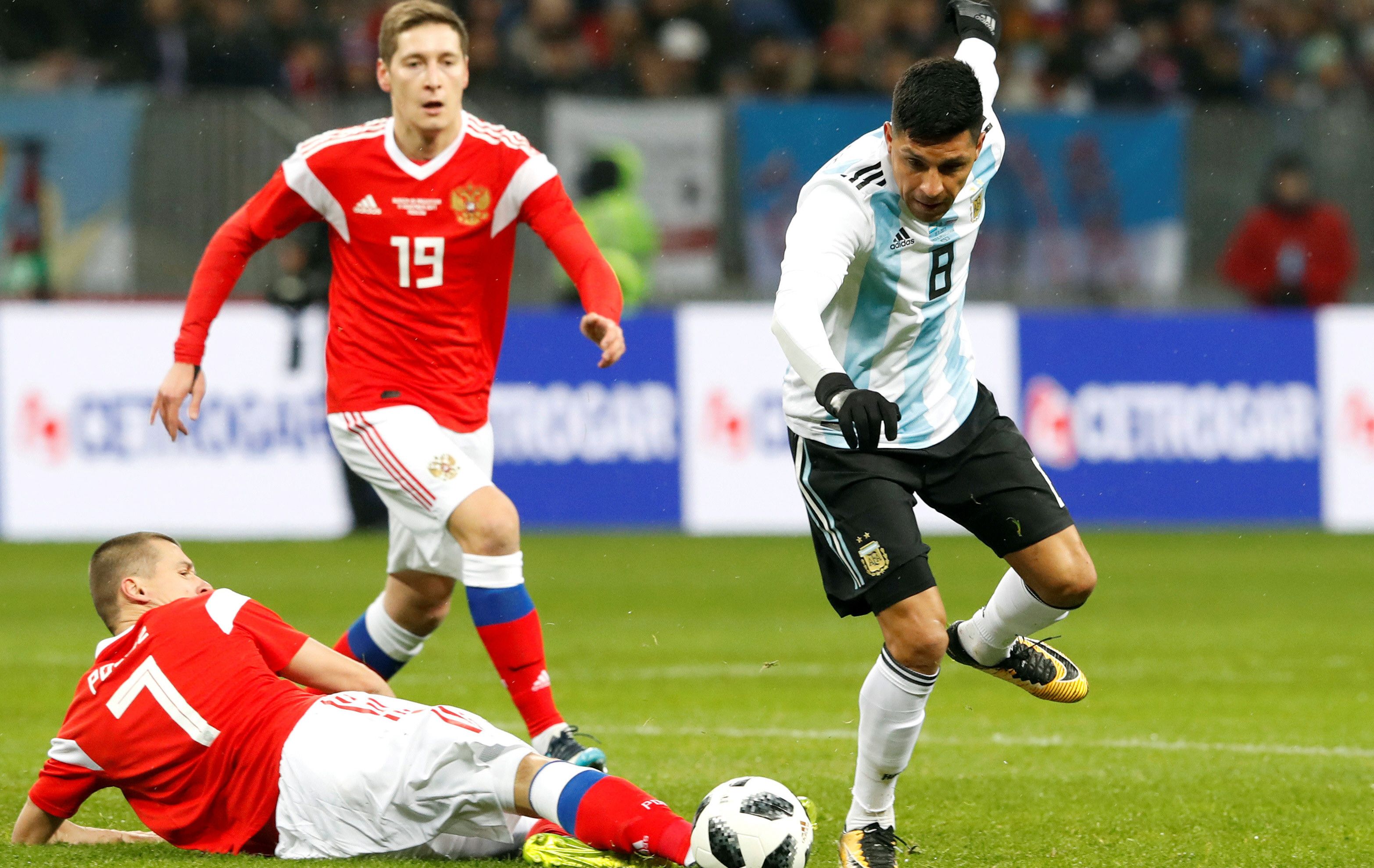 El seleccionado argentino de fútbol practicó ayer por primera vez en el centro de entrenamiento de la ciudad de Bronnitsy y recibió al mediocampista Enzo Pérez, quien reemplazó al lesionado Manuel Lanzini en la lista de 23 jugadores para el Mundial Rusia 2018.