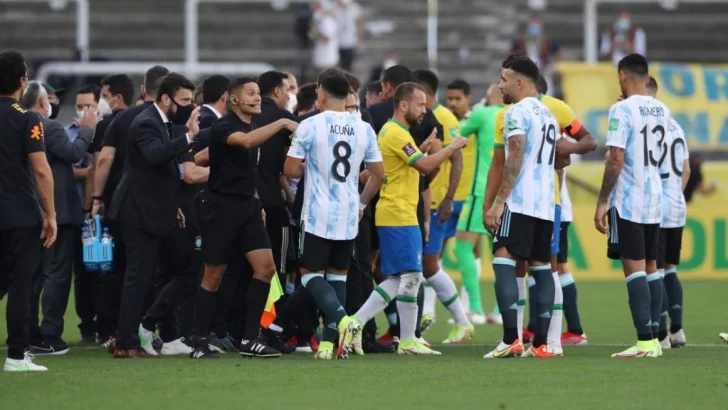 Este domingo se escribió uno de los mayores papelones del fútbol mundial. Argentina estaba disputando su encuentro de Eliminatorias ante Brasil, luego de una previa caliente, y a los cinco minutos se metieron al campo las autoridades sanitarias para llevarse a los cuatro futbolistas argentinos que juegan en la Premier. En medio de discusiones, empujones y desconciertos, los de Scaloni dejaron el Arena Corinthians. Y un rato después la Conmebol anunció que se suspendió el partido.