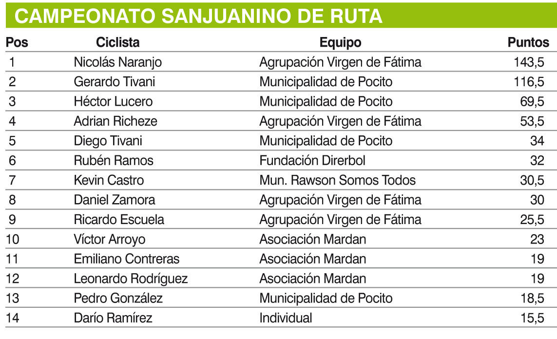 Ayer Ricardo Escuela, cuarto el año pasado y candidato “piquetero” a pelear la general, fue segundo. El SEP-San Juan mostró sus credenciales tirando del pelotón para neutralizar la fuga que tuvo la carrera y llegó a tener a su rueda al Movistar español.