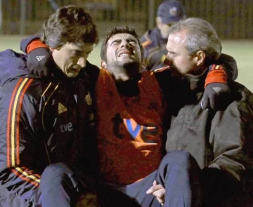 Dolorido, rápidamente quedó tendido en el suelo y al intentar levantarse no podía apoyar su pierna derecha, por lo que tuvo que ser retirado en volandas por el doctor Óscar Luis Celada y uno de los fisioterapeutas del equipo nacional, Fernando Galán.