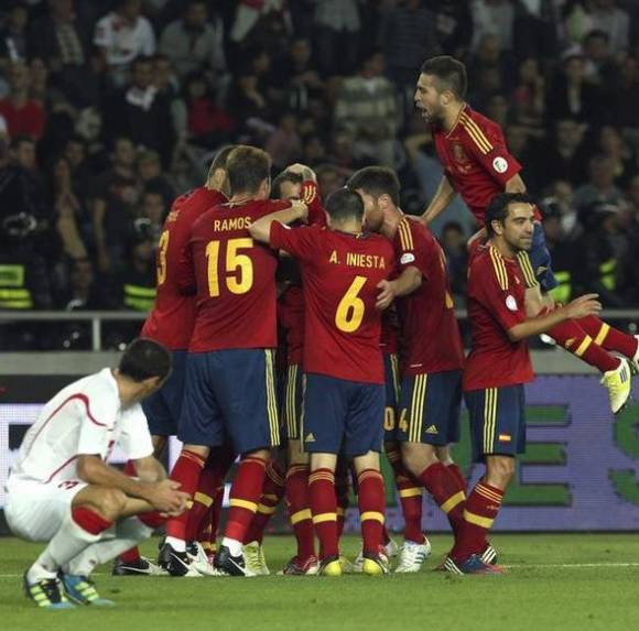 España, último campeón del mundo, superó a Georgia por 1-0, de visitante, en su debut en el Grupo I de las Eliminatorias de Europa para el Mundial de fútbol de Brasil 2014, en uno de los partidos válidos por la segunda fecha de la competencia.