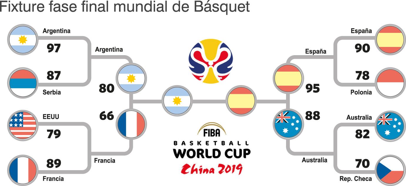 En la fase de grupos, España venció sin problemas en su debut a Túnez (101-62), luego hizo lo propio con Puerto Rico (73-63) e Irán (73-65) y clasificó como primero del Grupo C. En segunda ronda dio una exhibición en defensa para llevarse un ajustado triunfo ante Italia (67-60) y dio el batacazo frente a Serbia con un rotundo 81-69 y pasó a cuartos como puntero del Grupo J, evitando así, justamente, el duelo con Argentina. Ahí no tuvo problemas para vencer a Polonia (90-78), con la figura de Ricky Rubio. El base español lideró al equipo y lo llevó a semis, donde necesitó de dos tiempos suplementarios para vencer a Australia (95-88) y meterse en la final.
