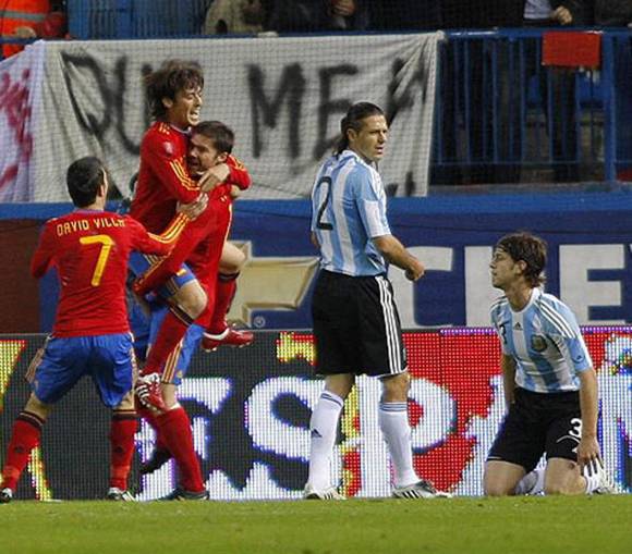 España, brindando por momentos una verdadera lección de fútbol y buen gusto, venció ayer al seleccionado argentino por 2 a 1, en el marco de un partido amistoso internacional previo al mundial de Sudáfrica 2010.