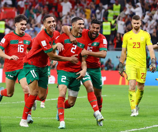 Bajo un infernal ambiente propuesto por sus seguidores, Marruecos hizo historia este martes con su primera clasificación a cuartos de final en una Copa del Mundo, tras eliminar a España por penales (3-0) en los octavos de Qatar 2022. El lateral Archaf Hakimi, compañero de Lionel Messi en París Saint-Germain, desató el delirio de más de 15.000 marroquíes enardecidos con una definición pinchada, homenaje al uruguayo Sebastián Abreu en los cuartos de Sudáfrica 2010. España, campeón de aquella edición, falló sus tres ejecuciones en el estadio Education City: Pablo Sarabia estrelló su remate en el palo; mientras que Bono -arquero del Sevilla- tapó los envíos de Carlos Soler y Sergio Busquets. El encuentro fue arbitrado por el argentino Fernando Rapallini, que completó su tercer partido en la competencia con apenas dos tarjetas amarillas, una por equipo. Marruecos, uno de los cuatro invictos en Qatar, logró un inédito ingreso a la élite del fútbol, algo que no había podido conseguir en sus cinco participaciones mundialista anteriores. Sólo una vez (México ’86) había accedido a octavos y en las otras no pasó de la fase inicial (1970, 1994, 1998 y 2018).