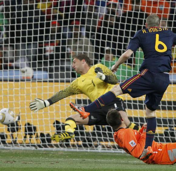 Y de tanto ir España y su fútbol tuvieron su premio, porque Fabregas sacó de la galera un pase maravilloso para Iniesta y el volante del Barcelona, con un remate cruzado estableció el 1 a 0, suficiente para ser campeón mundial.