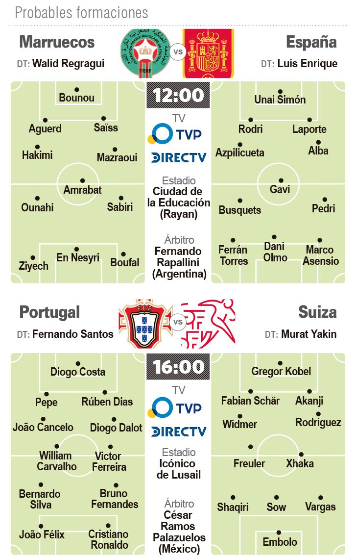 Portugal y Suiza se cruzarán hoy (16 horas) por el restante octavos de final y el ganador se cruzará con España o Marruecos.