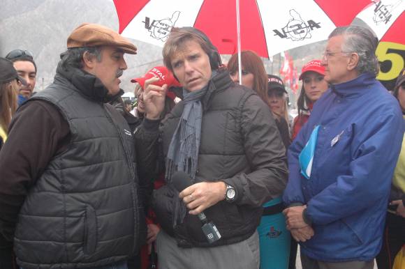 La primera fue la tardanza en el comienzo de la carrera final del Top Race V6. Debía comenzar puntualmente como es costumbre en esta clase de espectáculos (a las 13.05) pero se retrasó debido a un problema de la televisación. El arranque se estiró un poco más de lo debido (hasta la 13.28), lo cual molestó a los pilotos que ya estaban en la pista. Además la nota que tenía prevista la televisión, que debía realizar Alejandro Fantino al gobernador José Luis Gioja (foto) también debió acortarse debido a este problema.