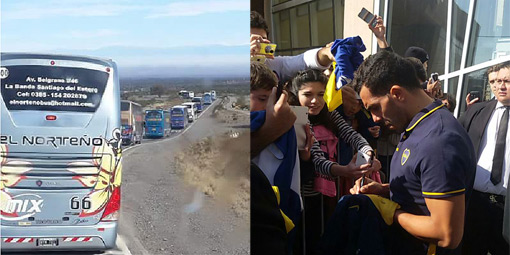 San Juan.- Más de diez colectivos conformaron la caravana que salió desde Santiago del Estero con destino el Estadio del Bicentenario para lo que será la presentación de Güemes frente a Boca por la Copa Argentina.