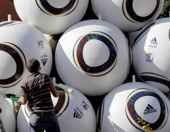La escultura de este pintor, donde representa a varias de las pelotas oficiales juntas y en tamaño gigante, se exhiben en el IBC (Centro Internacional de Prensa) cerca del Estadio "Soccer City", el principal de Johannesburgo. Todo está listo para el inicio del Mundial y una de las vedettes que se estrenará en Sudáfrica es la nueva pelota diseñada por la firma Adidas, la que trajo aparejado problemas para los arqueros, quienes se mostraron molestos por los cambios en su trayectoria.