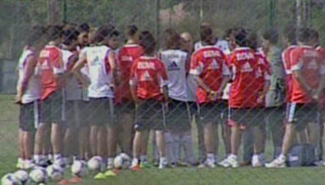 Trascartón José Luis Bustamante, uno de los preparadores físicos empezó a trabajar con el plante con mucho contacto con pelota, en tanto Díaz continuó una charla a un costado con Passarella y Turnes.