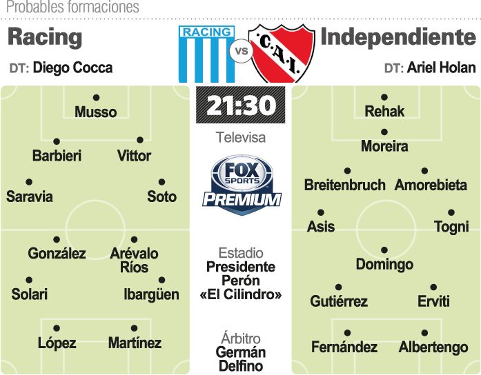 Racing, que intentará afianzar su camino en la Superliga tras derrotar a domicilio nada menos que al líder, Boca, recibirá hoy a Independiente, que el martes se juega el acceso a la final de la Copa Sudamericana, en una nueva edición del clásico de Avellaneda. El duelo, válido por la décima fecha, se disputará en el Cilindro a partir de las 21.30, y contará con el arbitraje de Germán Delfino y la televisación de Fox Sports Premium.