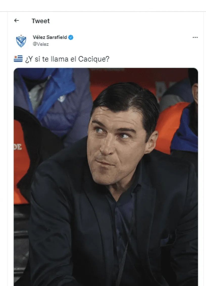 "¿Y si te llama el Cacique?", escribieron en un tuit en la cuenta oficial de Vélez, junto a la bandera de Uruguay. Justo, tras eliminar a River.