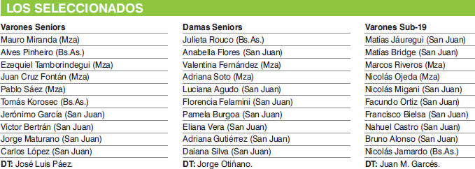 No se dieron grandes sorpresas de acuerdo a las actuaciones de los jugadores en los últimos torneos nacionales. Hay que recordar que en varones seniors el DT "Negro" Páez eligió entre los jugadores que están en el país, dejando de lado a los que juegan en Europa. Mientras que entre las mujeres, el coach "Negro" Otiñano citó sólo a dos que están en el Viejo Mundo, las sanjuaninas Adriana Gutiérrez y Daiana Silva, en realidad dos símbolos de Las Aguilas.