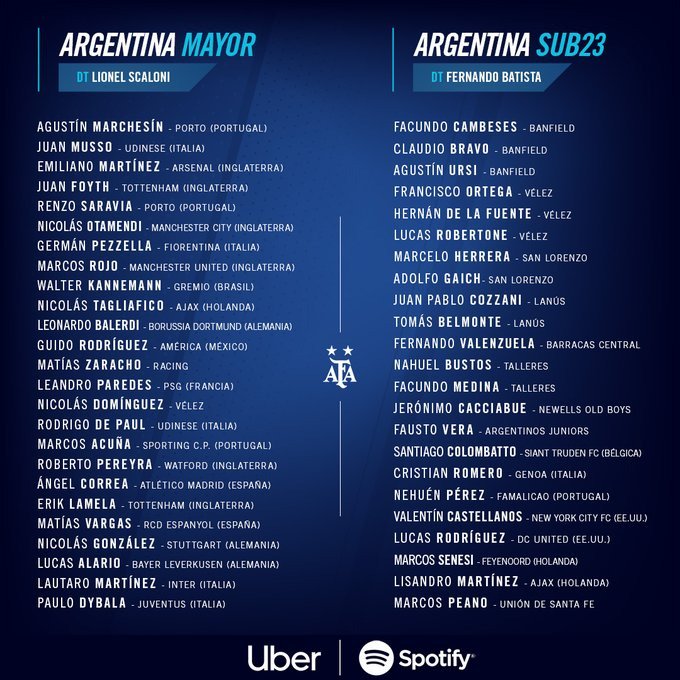 Agustín Marchesín (Porto), Juan Musso (Udinese) y Emiliano Martínez (Arsenal) serán los tres arqueros ante la decisión de no convocar futbolistas de Boca y River por quedar en medio de la semifinal de la Copa Libertadores, lo que dejó al margen a Esteban Andrada y Franco Armani.