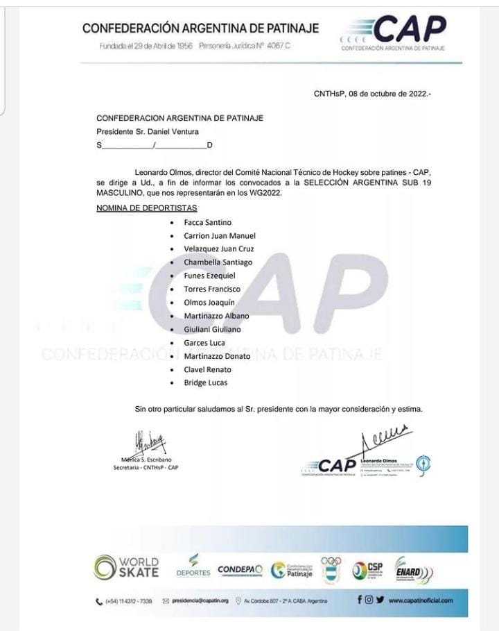 El viernes revelaron el listado de Las Águilas de cara a los World Skate Games 2022 y este sábado, mediante un comunicado en las redes, se conoció la lista de 13 deportistas que serán parte del seleccionado Sub 19.