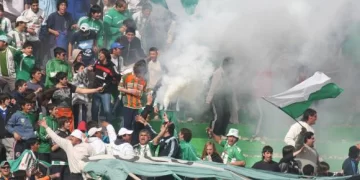 Con muchas banderas y esta vez con el agregado de diferentes vengalas con humo blanco y verde le dieron el colorido perfecto a una tarde ideal para ir a la cancha. Hubo cánticos pidiendo el mencionado ascenso, como también el recordatorio de que "el que no salta es verdinegro", en alusión a San Martín.