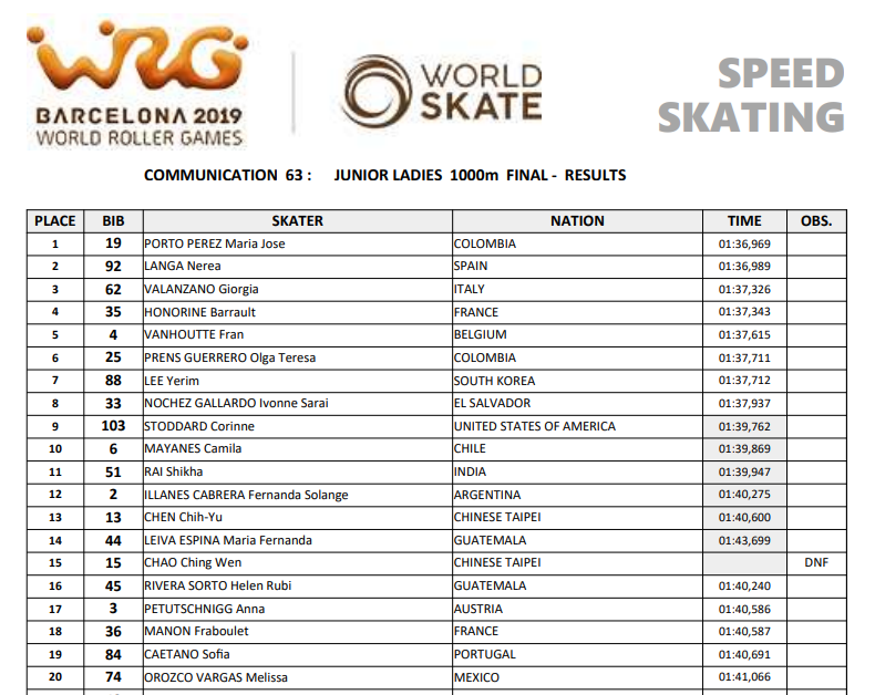 De este modo, la patinadora de Los Halcones quedó ubicada en el puesto número 12 de la tabla general, integrada por 51 corredoras.