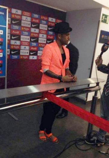 El lateral se presentó en la zona mixta para hablar con la prensa con un llamativo saco naranja y unas sandalias que hacían juego y las preguntas no tardaron en surgir. "Soy yo el que me compro la ropa. Me gusta ponerme esta ropa", respondió sin avergonzarse el brasileño.