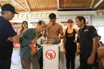 San Juan, 26 de marzo.- Esta mañana, en Villa Don Tomás, se llevó a cabo el pesaje de los boxeadores que participarán en la velada de mañana en el Aldo Cantoni. El campeón argentino superpluma, el sanjuanino Ezequiel “PacMan” Fernández, pesó 58,700kg y defenderá por primera vez esa corona, cuando enfrente al mendocino Claudio Aguirre (58,300kg), en la pelea estelar y con transmisión en vivo de la TV Pública.
