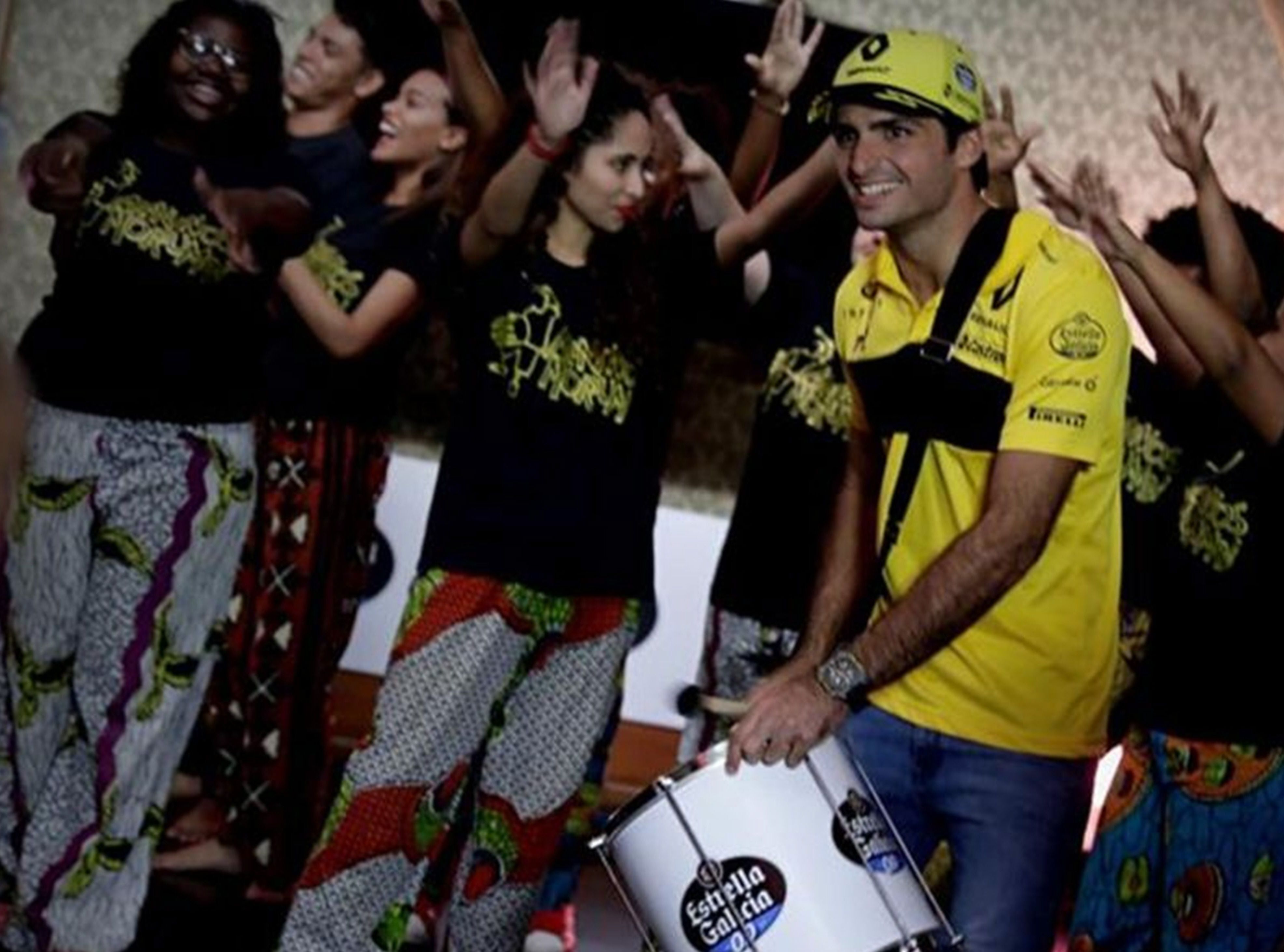 El español Carlos Sainz (Renault) se atrevió a tocar ayer el tambor y acompañar un grupo de batucada en Sao Paulo antes de subirse al monoplaza para el Gran Premio de Brasil, que se disputará el domingo en el circuito de Interlagos.