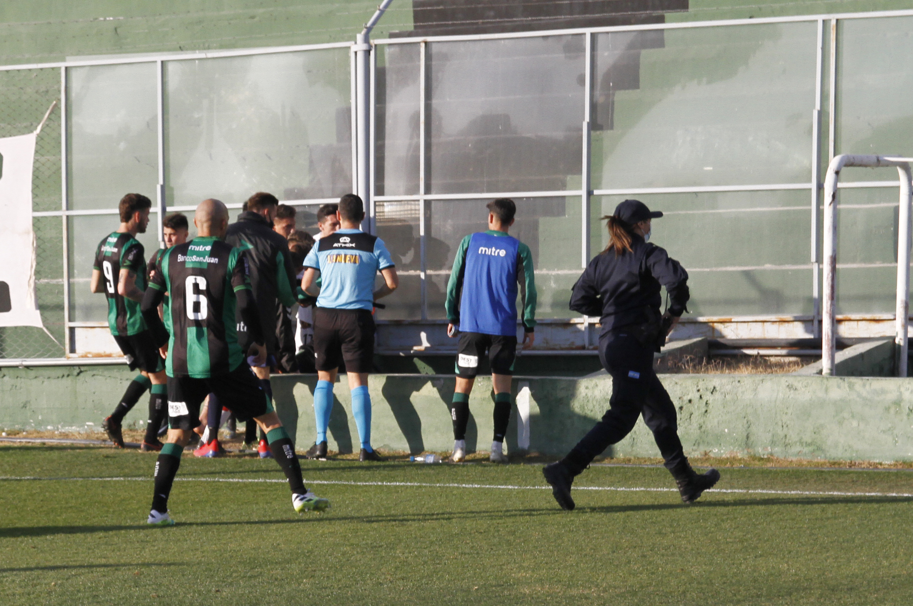 También intervino personal policial que intentó que todo no pase a mayores y culmine el partido, al que le faltaba unos minutos.