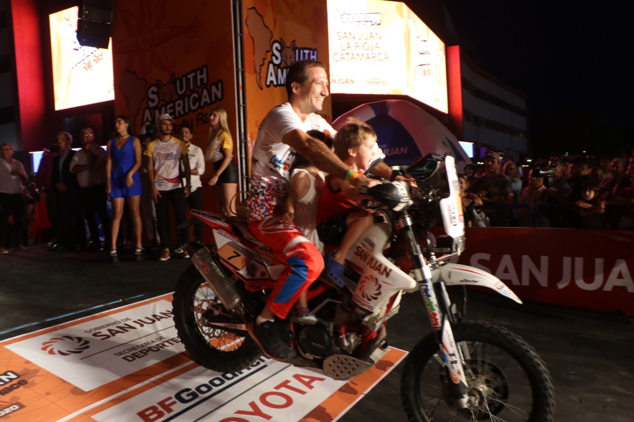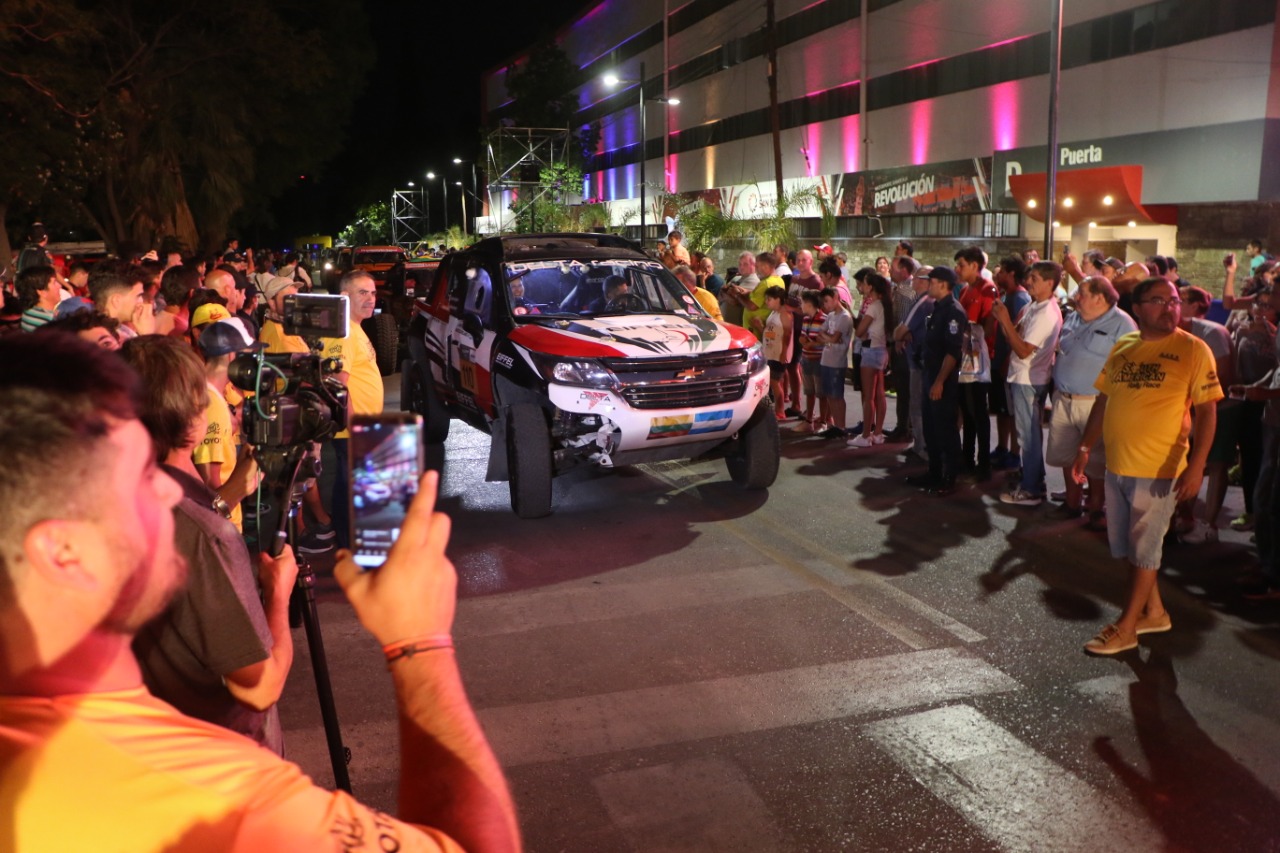 Frente al estadio Aldo Cantoni y antes cientos de fanáticos que vibraron con cada vehículo, se realizó la largada simbólica en una rampa que fue montada justo en la esquina de Urquiza y San Luis. Allí, uno a uno fueron pasando los protagonistas de la prueba, entre juegos de luces, música y motores rugiendo.