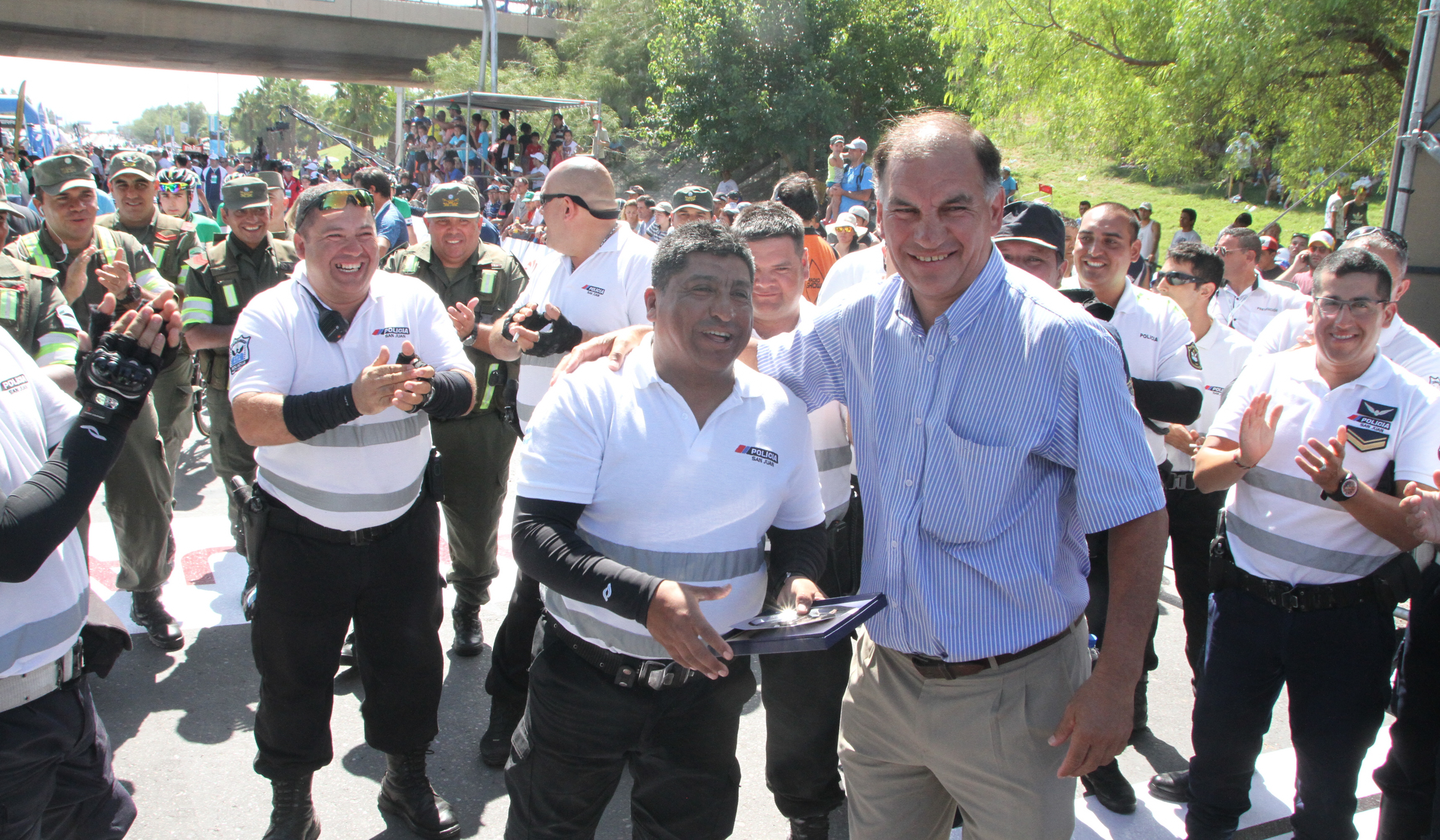 La emoción ganó el rostro de este albardonero que actualmente integra el GAM cuando recibió una plaqueta del director de Seguridad de la prueba, el comisario general retirado Robert Castro. Al aplauso de sus compañeros y también de los gendarmes que cumplen su misma función sobre las motos se sumó el de la gente que estaba en la zona de llegada y con ese cariño al alma, agradecieron su destacada tarea.