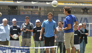 Con su habitual simpatía y cordialidad, Federer disfrutó cada instante dentro del césped. Es que desde que se confirmó su visita al país, el suizo hizo público su deseo de visitar el mítico escenario ubicado en el barrio porteño de La Boca. En el primero de los minipartidos, Federer hizo dupla junto a Del Potro, mientras que del otro lado jugaron Batistuta y el polista Adolfo Cambiasso, en tanto que luego ingresó Sebastián Battaglia.