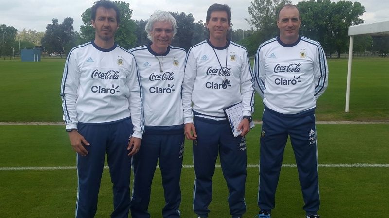 Fernando Batista (izquierda), integrando el cuerpo técnico de Úbeda. Foto: Twitter @Argentina
