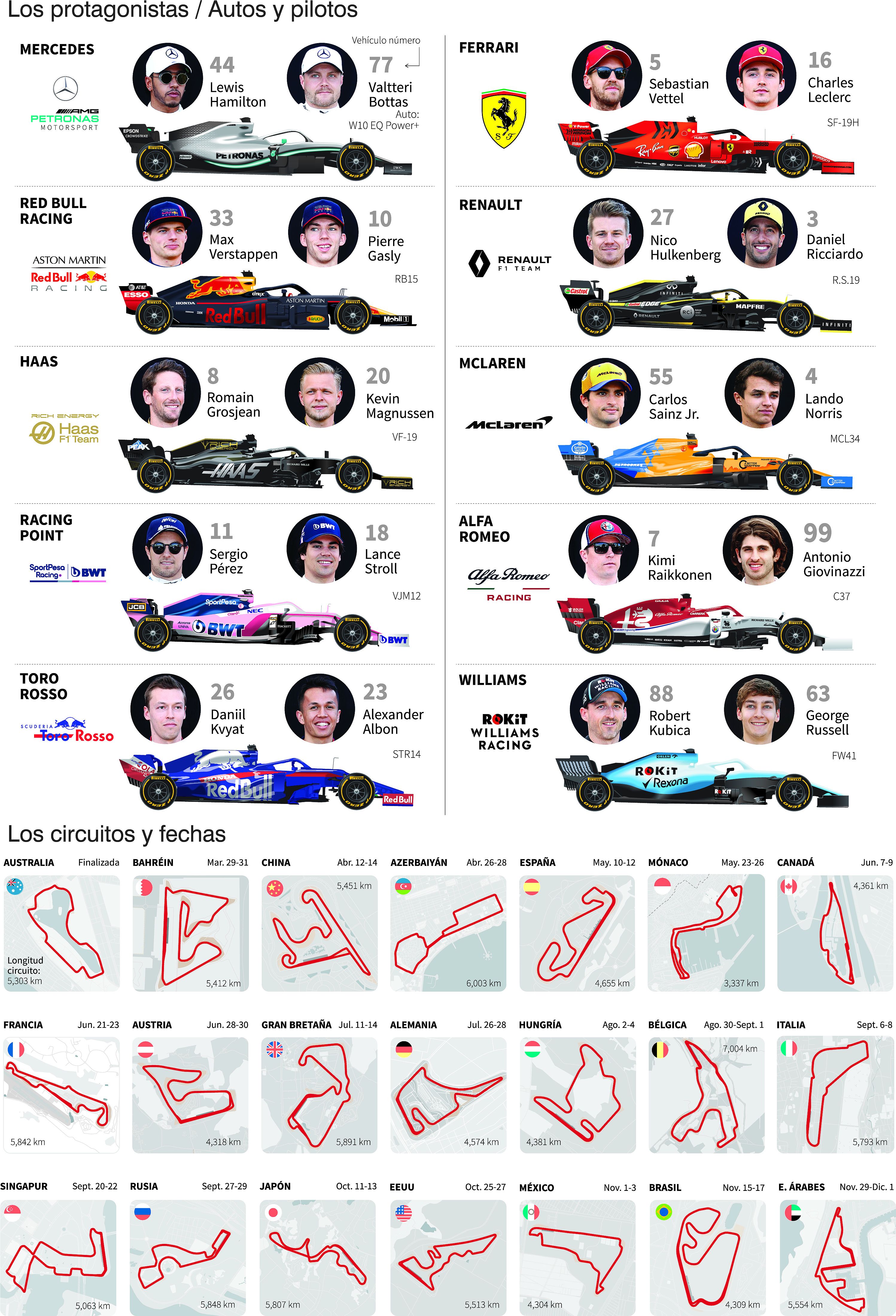 El primer ganador. El finlandés Valtteri Bottas (Mercedes) ganó el Gran Premio de Australia, que inauguró la temporada. Ahora, en Bahrein, los pilotos de Ferrari (Vettel y Lecrerc) van por la victoria para no perder terreno.