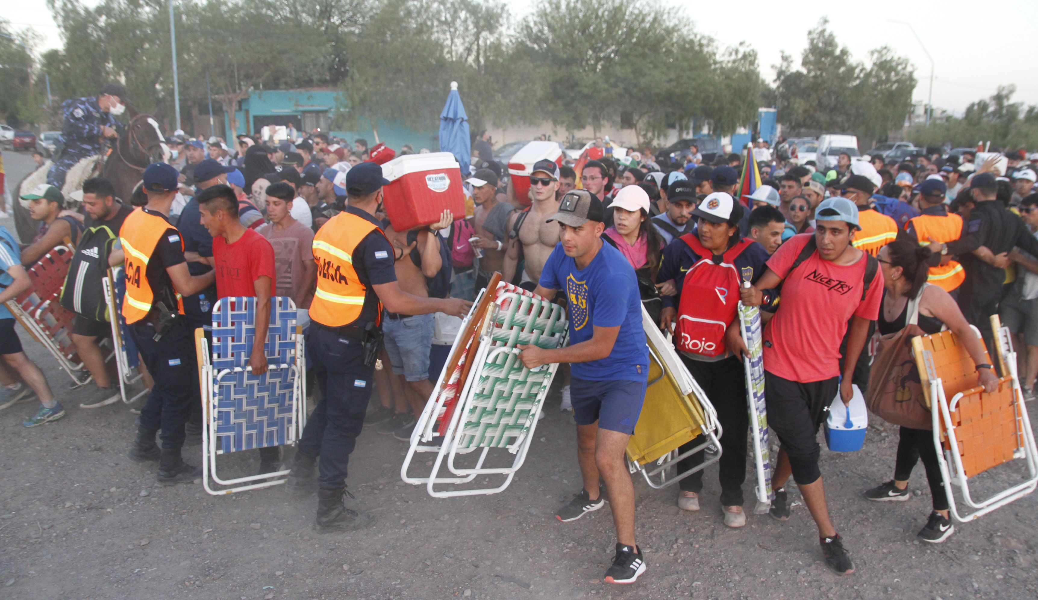 Teniendo en cuenta que serían 18 mil entradas que se iban a vender y la cantidad de gente que ya se daba cita, el temor a quedarse sin su ticket llevó a que el ánimo de los hinchas se fuera alterando y muchos intentaban avanzar. La Policía hacía lo que podía. La orden era no avanzar, pero era tanto el fervor de los hinchas que comenzaron a hacer pasar por grupos a la gente pero los autos no se enfilaban y avanzaban en filas de a tres o cuatro vehículos, muchas veces rozándose entre sí. Y quienes estaban a pie, mostraban su descontento por querer avanzar, pero cuando se habilitó el paso comenzaron las corridas queriendo sacar algún tipo de ventaja.