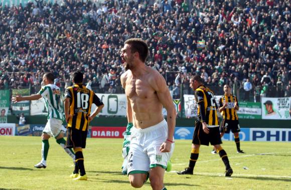 Tres minutos más tarde hubo un penal de Moset, quien tomó a Barrales y el árbitro Loustau sancionó penal que Erviti transformó en gol. El segundo tanto fue a los 35′ convertido por García.