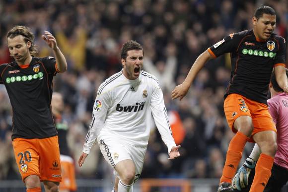 Era la gran chance para el Real Madrid de acortar distancia con el puntero de la Liga de España, el Barcelona de Lionel Messi, ya que los catalanes habían igualado el sábado. Y el equipo de Manuel Pellegrini no dejó pasar la ocasión: se impuso 2-0 como local al Valencia y ahora se encuentra a un punto del Barcelona. La apertura del marcador para el Merengue la anotó el argentino Gonzalo Higuaín, quien así quedó a dos tantos del actual goleador del torneo, Messi, quien ya suma 27. Mientras que el segundo fue obra del portugués Cristiano Ronaldo.