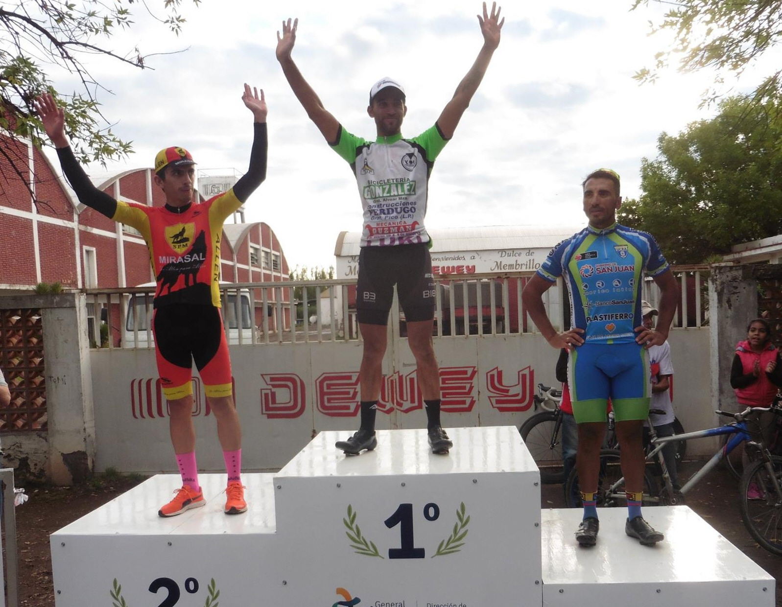 El podio. El marplatense Fraysse, ganador de la etapa, en el escalón más alto. Lo acompañan Ortega y Rivera, segundo y tercero.
