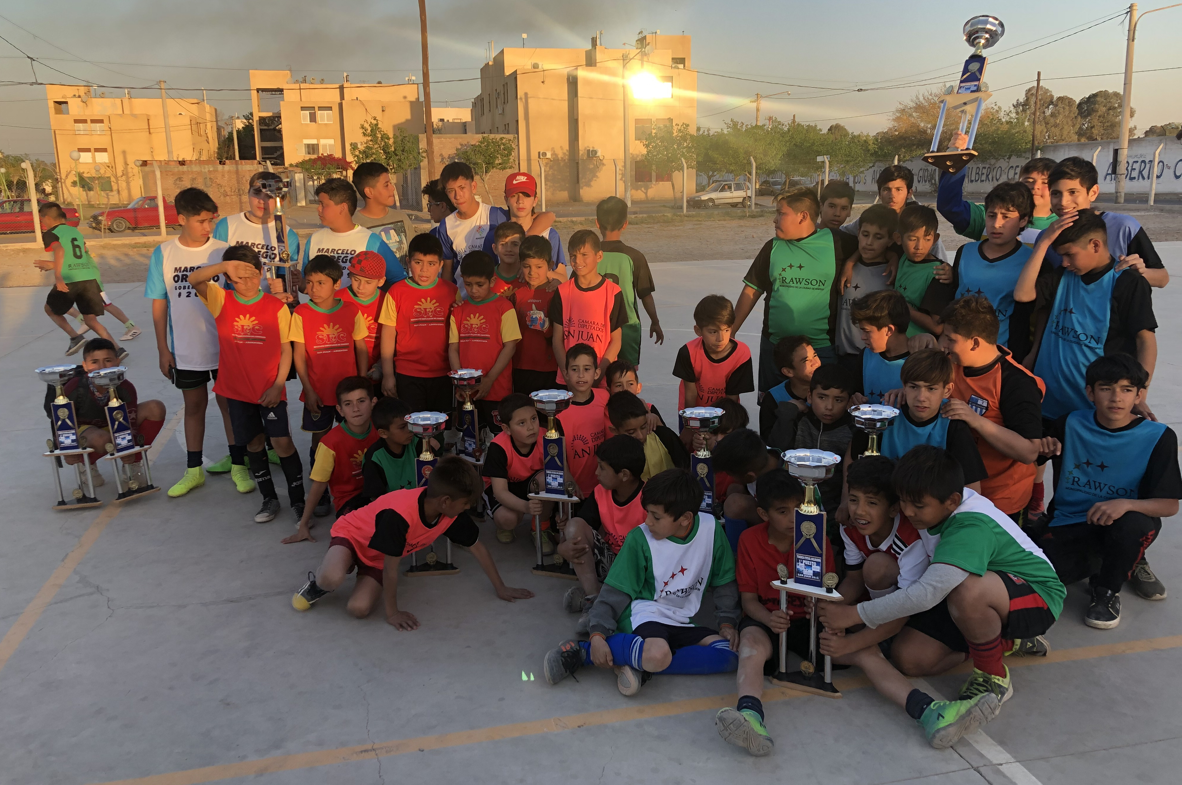En una gran jornada de futsal, se disputaron este domingo en la cancha del Barrio Las Garzas las definiciones del Primer Torneo de Futsal Solidario-Futsal de los Barrios Rawson 2019 que organizan Fefusa-San Juan (Filial Rawson) y la Fundación Patria Solidaria. En un clima familiar e importante marco de público, se pudo ver a los chicos divertirse, logrando inclusión y contención para todos ellos. Es el comienzo de un trabajo mancomunado que continuará congregando a todos los barrios del departamento de Rawson. El detalle de los campeones en cada una de sus categorías es el siguiente: