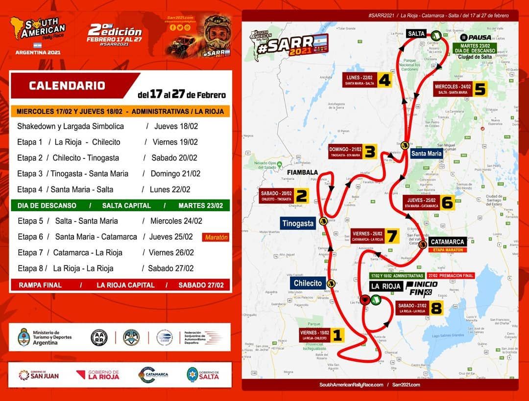 Con respecto al South American Rally Race, su cuenta oficial de Facebook anunció este jueves que el inicio no será en San Juan ni la carrera pasará por Valle Fértil. El comienzo fue trasladado hasta la capital de La Rioja y la primera etapa visitará la ciudad de Chilecito. Las etapas restantes no sufrieron modificaciones.