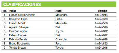 En tanto, en el Top Race Junior, Ariel Persia se ubicó segundo en la clasificación y desde ese lugar partirá hoy en la final, que se largará a las 10,10. En tanto que Gabriel Abarca partirá desde la 10ma colocación.