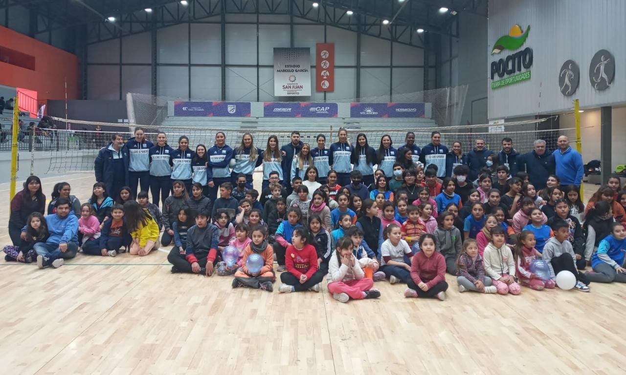 La primera actividad de Las Panteras en San Juan fue en Pocito, de donde es oriunda Candelaria Herrera, en la que el seleccionado argentino interactuó con nenas y nenes del departamento y recibió un emotivo reconocimiento.