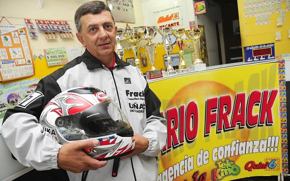Sabía que el desafío era grande. La inactividad de casi dos décadas y la edad, 49 años, le jugaban en contra. Sin embargo, Mario Frack hizo lo que todos sus clientes hacen cuando entran a su agencia de quiniela, ubicado en Rawson, apostó a un sueño. Y ganó. Ganó el premio mayor. Se consagró campeón nacional de motociclismo en Chile en la categoría 100cc. Cuando faltan dos fechas y con un título en el bolsillo, el corredor se ha propuesto consolidar el subcampeonato en los 400cc. y con el apoyo del intendente de Pocito, Sergio Uñac, y de DIARIO DE CUYO, aceptó la invitación de Oscar Terragos, propietario del equipo Suzuka para correr el año próximo.
